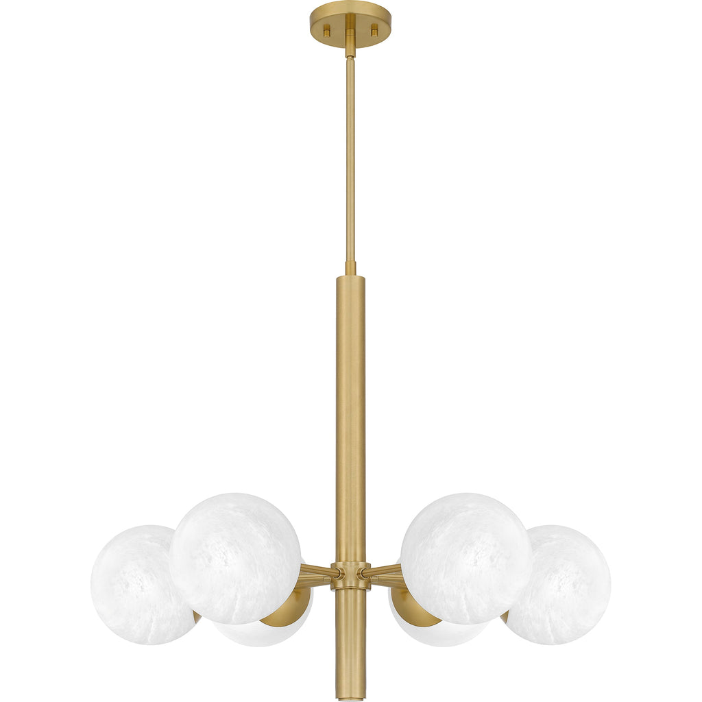 Cloud glass orbs create an exceptionally beautiful glow in the Solei mini globe chandelier. The distinctive silhouette is finished in aged brass, adding luster and luxury to the transitional design. Because the cloud glass is hand made, each globe may vary slightly due to its unique nature. Part of the popular Platinum by Quoizel collection, Solei pairs well with any modern or contemporary space.