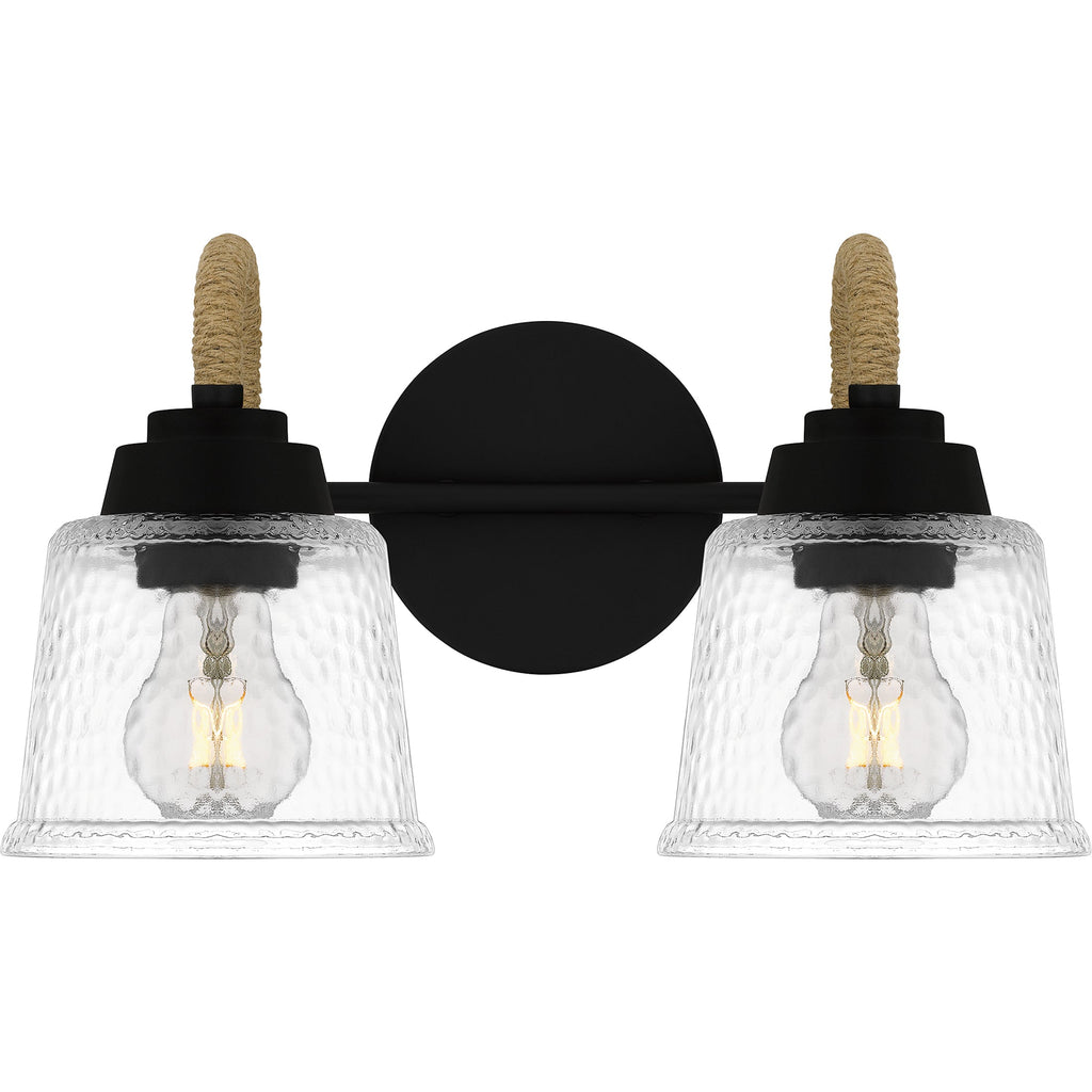 Upgrade any bathroom vanity with the addition of Seabreeze. This coastal-inspired bath light collection features clear hammered glass shades and a matte black finish. A natural looking arm takes the place of traditional metal, adding a nautical feel. Install Seabreeze with shades facing upwards or downwards, whichever best suits your unique space.