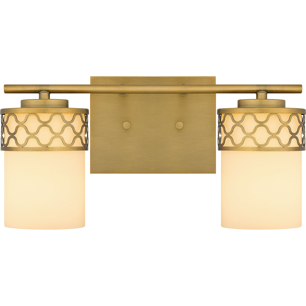 Add a touch of modern luxury to your bathroom with Tenley. The opal etched glass shades are wrapped in a delicate geometric pattern, inspired by the cool curving lines of Moroccan architecture. An aged brass finish adds sophistication and shine, making Tenley bath lights the perfect statement over any vanity.