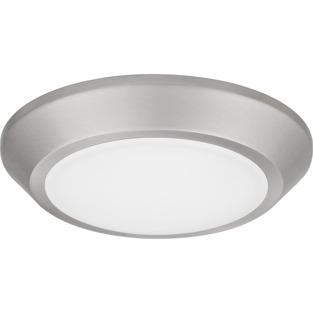 Available in four finishes and five different sizes, the Verge flush mount is suited for a variety of room applications. Choose from Earth Black, Brushed Nickel, White or Oil-Rubbed Bronze, each available in sizes of 5.5 in, 7.5 in, 12 in, 16 in or 20 in. The domed white acrylic shade is illuminated with integrated LED technology, and the thick canopy adds depth to the simple yet classic structure. If you're looking for practical lighting but don't want to sacrifice style, Verge is the ideal choice.