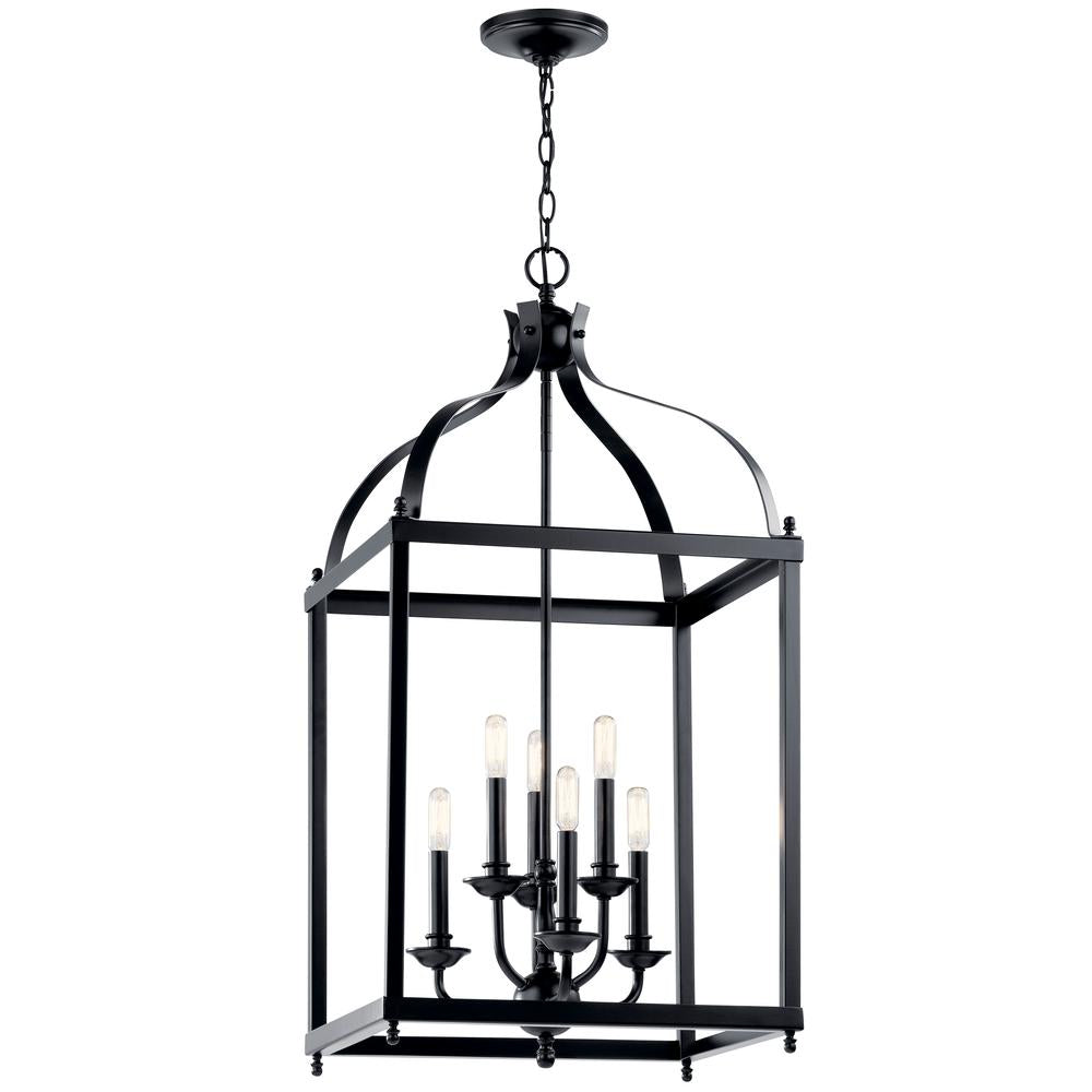This 6 light foyer pendant cage from the Larkin’??ƒ?§ collection creates a strong, linear silhouette. The Black finish and steel form of this design will effortlessly accent your home.