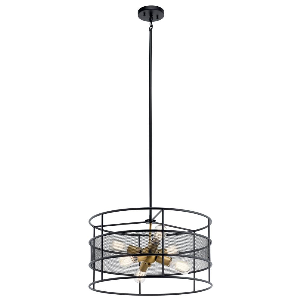 Two on-trend finishes deliver sleek industrial-era style on this Piston 6 light pendant. Natural Brass accents add the shine, while a black mesh cage forms the structure.