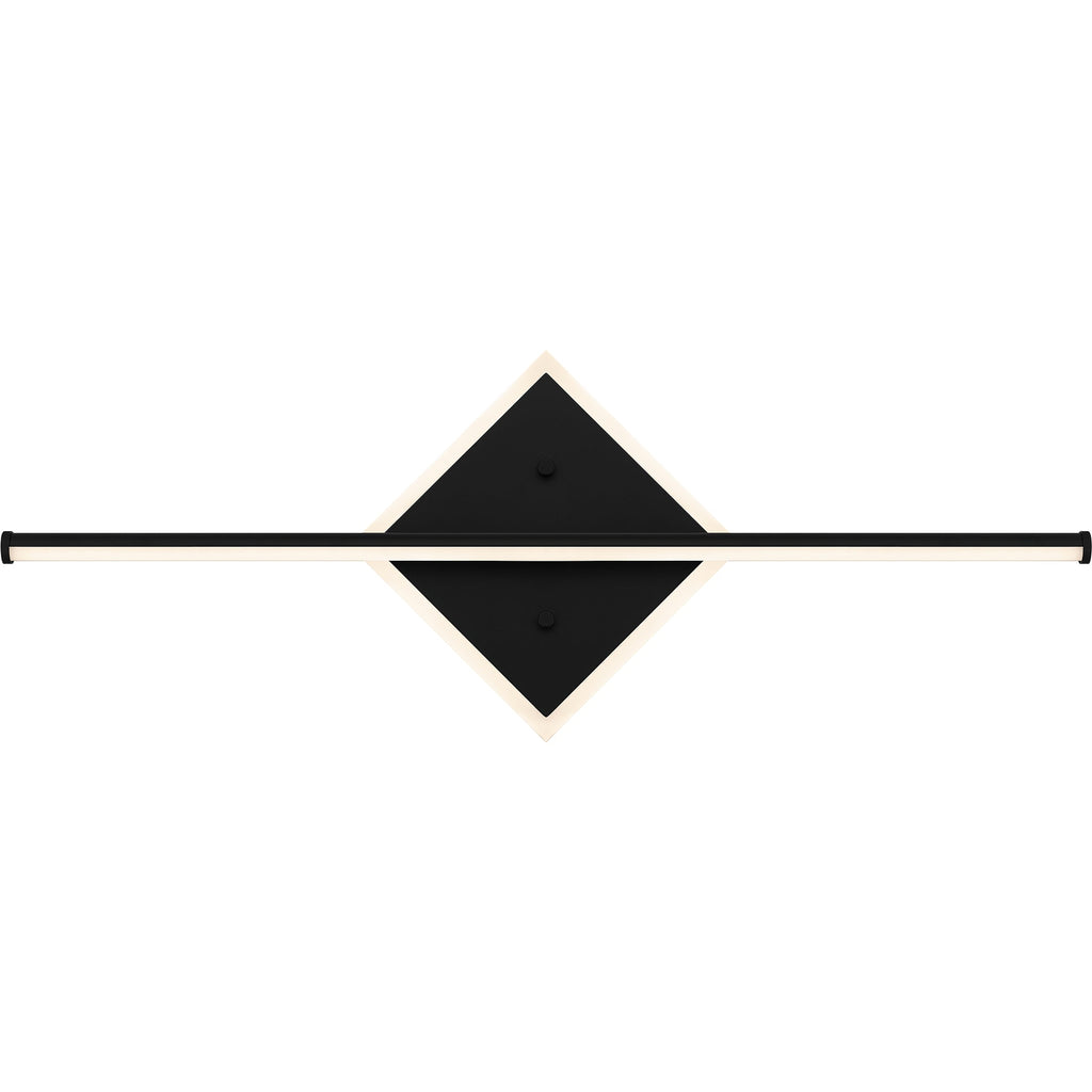 Part of our Platinum by Quoizel collection, the Parcelle bath light is as bold as it is modern. A light bar with an ultra-slim profile silhouettes a matte black, diamond shaped backplate - creating a one-of-a-kind geometric design. The integrated LED light source wraps around both the backplate and the light bar, providing energy saving, long lasting performance.