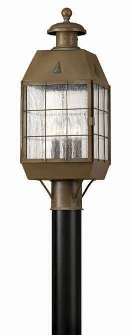 A Hinkley classic, Nantucket features a timeless New England design for the ultimate in vintage nautical chic. An Aged Brass finish, clear seedy glass panels and durable solid brass construction add to its retro appeal.