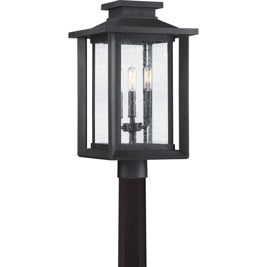 Arts and Crafts design meets vintage styling in the Wakefield. This well-appointed addition to Coastal Armour by Quoizel features a rich earth black finish that is rust-proof and fade-resistant. The collection features a frame within a frame for visual depth, as well as clear seedy glass panels and a tiered roof.
