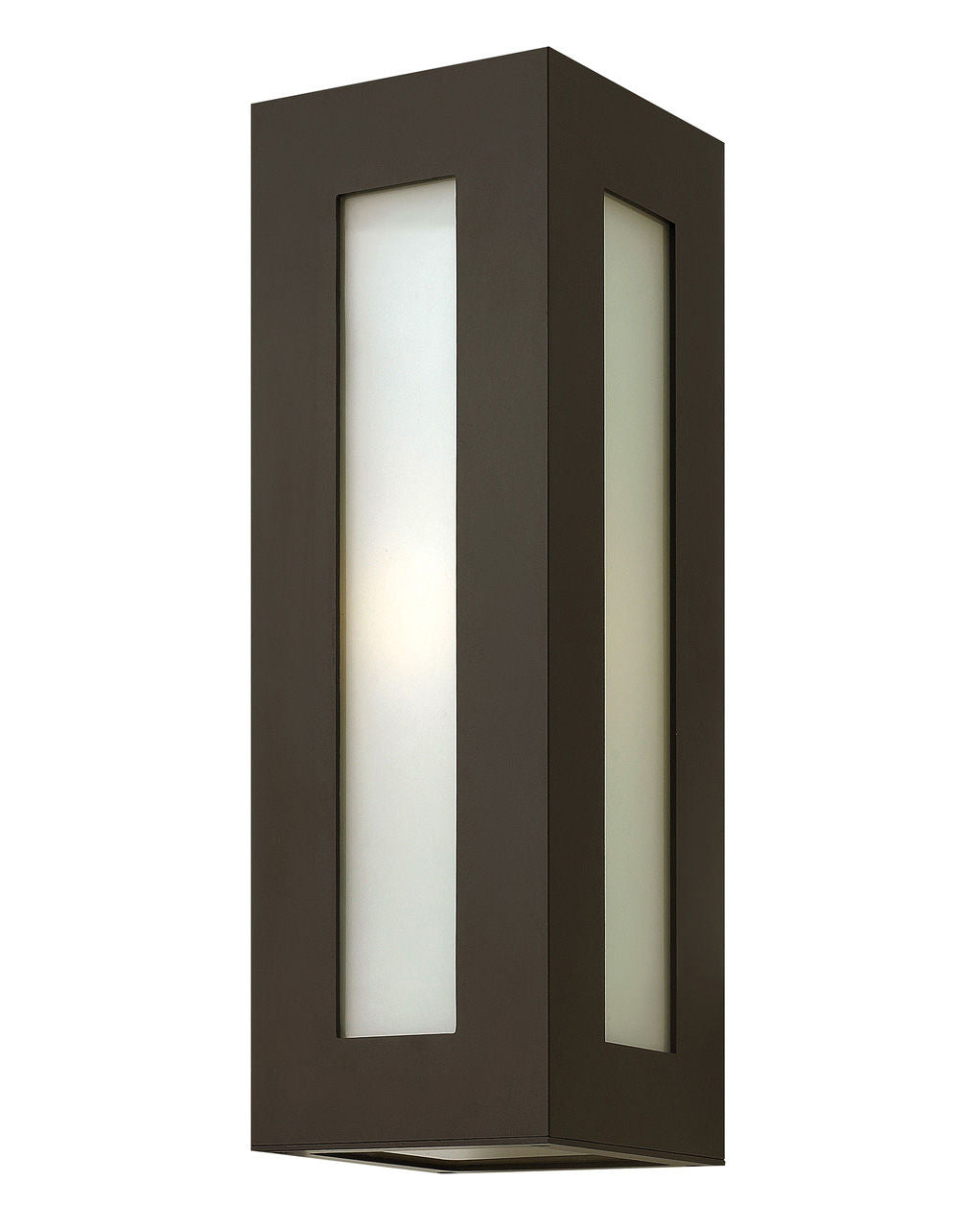 Dorians robust design in durable aluminum construction is offered in either Titanium or Bronze finishes. This contemporary fixture allows light to emit from white etched glass windows.
