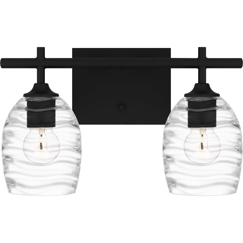 Clear optic glass shades feature a rippling, wavelike pattern that evokes serene movement in the Lucy bath light. Clean lines and a matte black finish complete the look, making Lucy a perfect complement to transitional or coastal inspired settings. Install with shades facing up or down - whichever best suits your preference.
