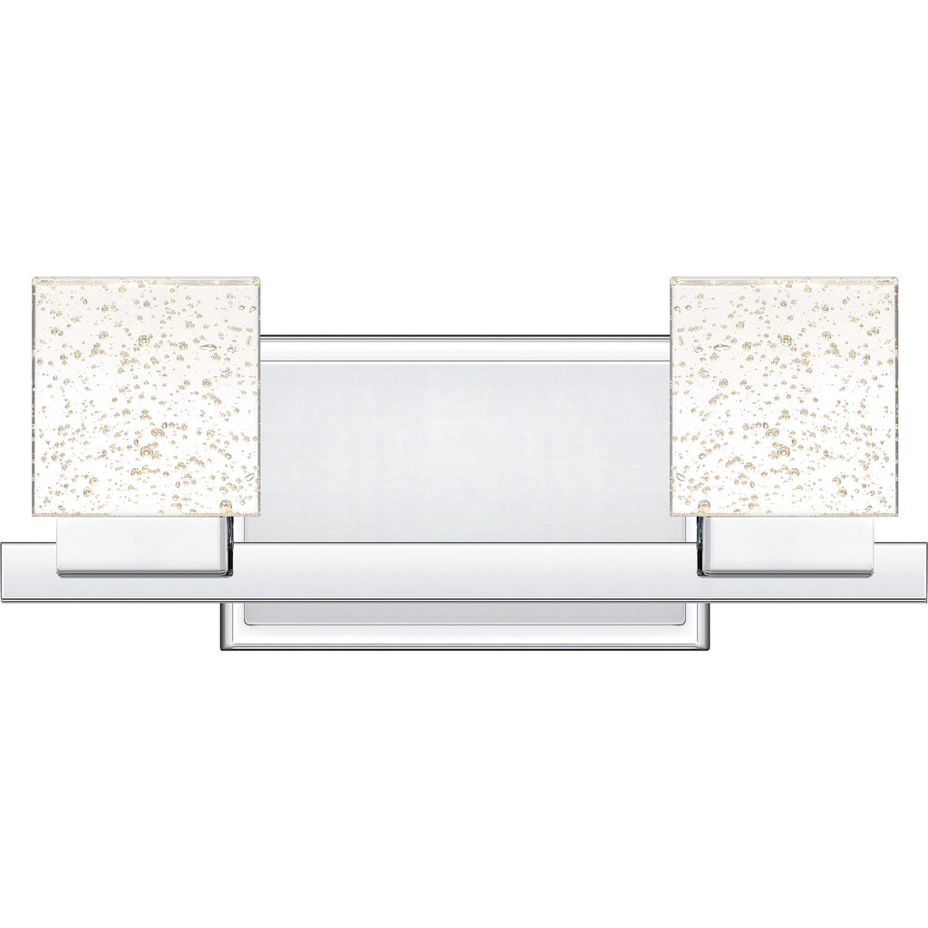 As part of our Platinum Collection, Zola offers a contemporary vanity lighting solution. Integrated LED technology pairs with a high-shine polished chrome finish for a look that is both stylish and energy-efficient. Square bubble glass shades complete the look of the bath light, adding visual appeal and luxury to the overall design.