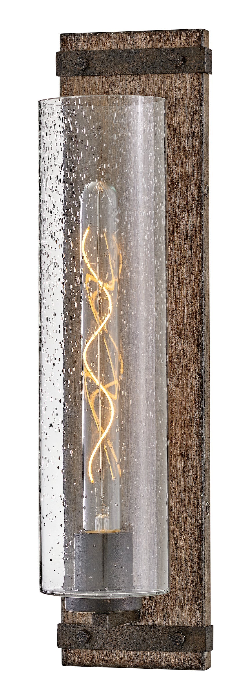 The fresh, rustic design of the Sawyer collection will enhance any living experience with a warm, cozy ambiance. The Sequoia finish with Iron Rust accents paired with clear seedy glass offer a farmhouse chic style.