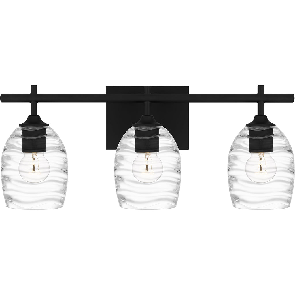 Clear optic glass shades feature a rippling, wave-like pattern that evokes serene movement in the Lucy bath light. Clean lines and a matte black finish complete the look, making Lucy a perfect complement to transitional or coastal inspired settings. Install with shades facing up or down - whichever best suits your preference.