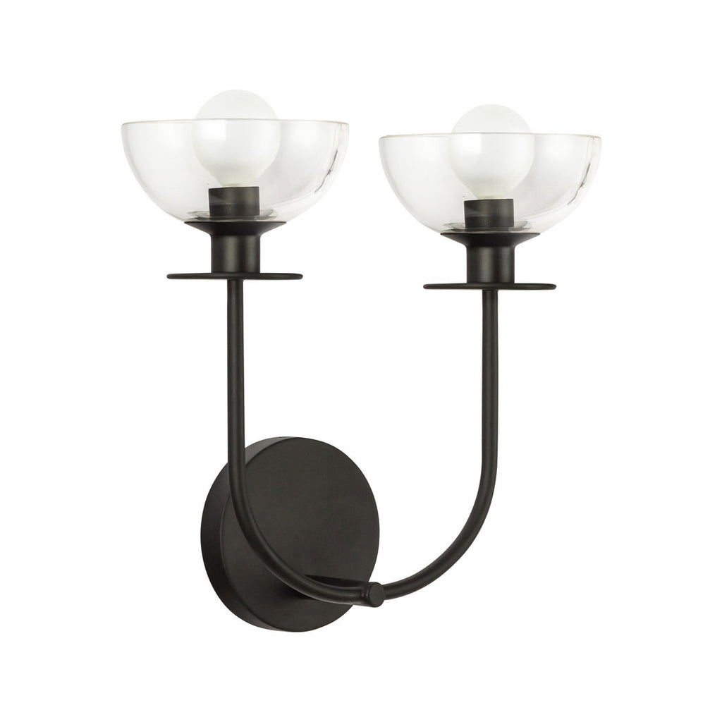 Sylvia 12-in Matte Black/Clear Glass 2 Lights Wall Vanity - WV515212MBCL